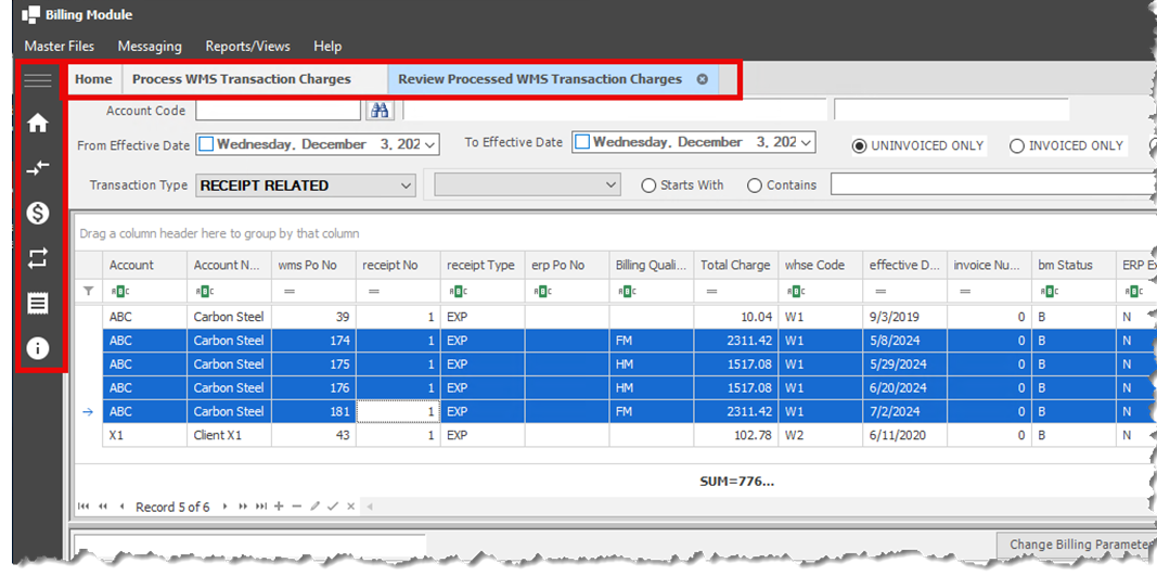 The billing module has been completely redesigned with a new multi-tab user interface that transforms how billing information is accessed and managed. This intuitive layout consolidates critical data across organized tabs, allowing users to view and work with significantly more information within a single form. The result is a streamlined workflow that reduces the need to navigate between multiple screens, enhancing productivity and providing billing personnel with a comprehensive view of all relevant data at their fingertips.
