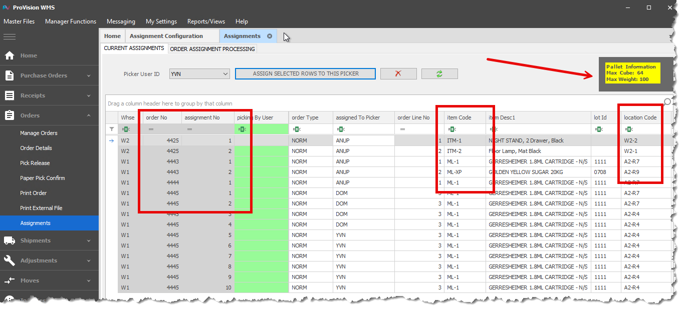 Revolutionary Picking Assignment Module The new Picking Assignment module introduces intelligent order fulfillment capabilities that optimize picker productivity and warehouse flow. The system seamlessly separates full pallet picking from case picking operations, directing multiple pickers to appropriate zones based on their Unit of Measure (UOM) restrictions. Case pickers are assigned to pick lines based on the cube capacity of their equipment, while full pallet pickers are directed accordingly. Designed to support both automated picking systems and traditional RF-based operations, this module represents a significant advancement in warehouse execution efficiency.